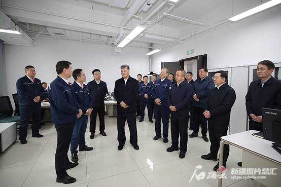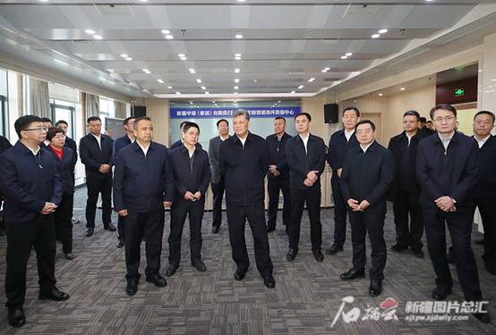 12月2日,自治区党委书记马兴瑞、自治区主席艾尔肯·吐尼亚孜等在新疆亚新煤层气投资开发集团,深入了解企业管理运营情况。石榴云/新疆日报记者崔志坚摄