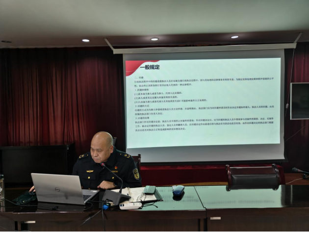 “岗位大练兵”活动主要采取各执法人员授课的形式开展,主要以学习习近平法治思想、《中华人民共和国行政处罚法》《中华人民共和国道路运输条例》《新疆维吾尔自治区农村公路条例》等交通运输领域法律法规、交通运输行政执法程序、案卷文书制作、调查取证技巧、道路运政、路政、海事综合业务等内容为主。为增强培训效果,还需进行7次综合行政执法业务理论闭卷考试,重在考核执法人员的综合业务能力,全面检验执法人员参加培训取得的效果。通过“以考促学”的方式加深执法人员对培训内容理解,进一步增强执法人员的法治观念和服务水平,同时提高执法人员的业务水平。