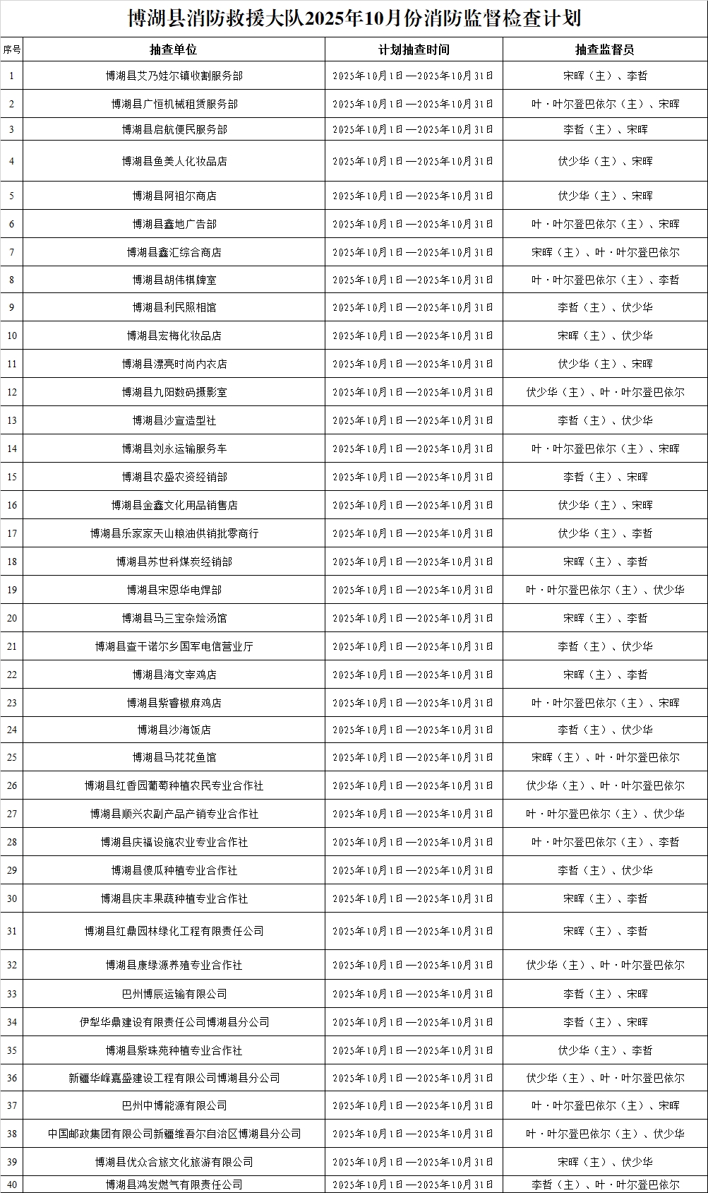 按照博湖县消防救援大队《2025年度“双随机、一公开”监督抽查工作计划》,我大队严格依据规定抽查比例和频次,每月制定抽查计划,随机确定检查单位和执法人员。现将2025年9月“双随机、一公开”消防监督检查情况及10月抽查计划向社会公开。