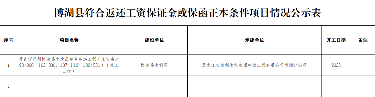 附件:博湖县符合返还工资保证金或保函正本条件项目情况公示表