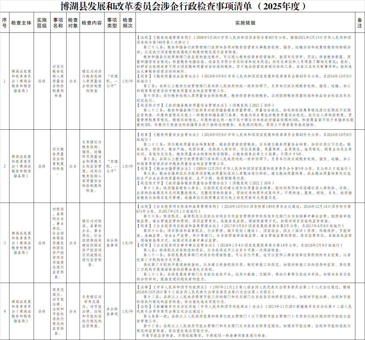 博湖县发展和改革委员会涉企行政检查事项清单 (2025年度)