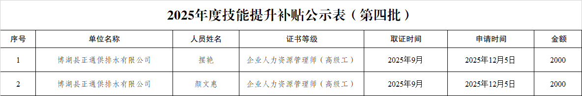 附件:博湖县2025年度技能提升补贴公示表(第四批)