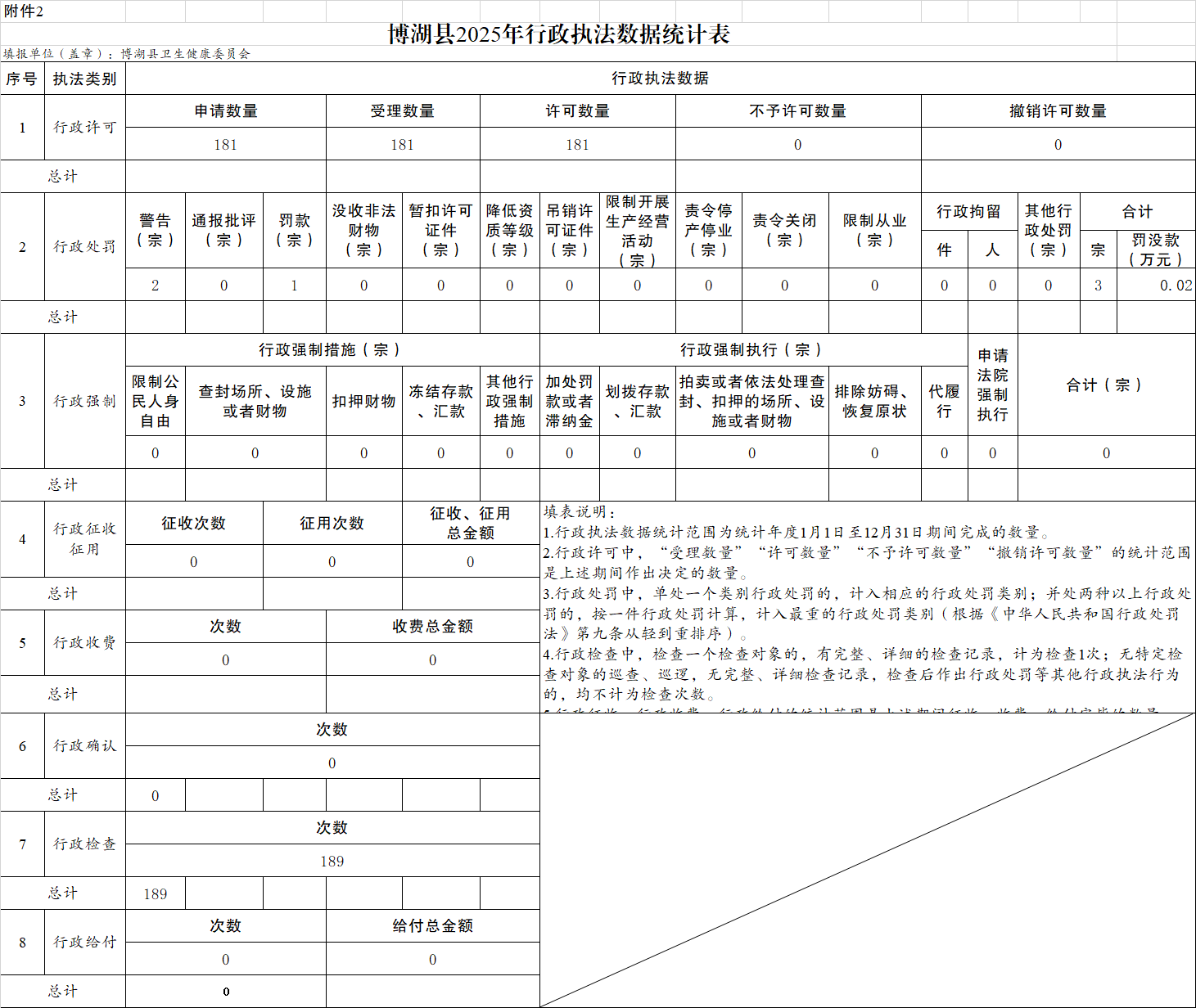 博湖县卫生健康委员会2025年行政执法数据统计表