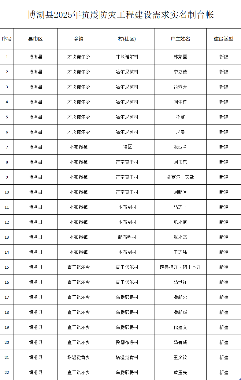博湖县2025年抗震防灾工程建设需求实名制台帐