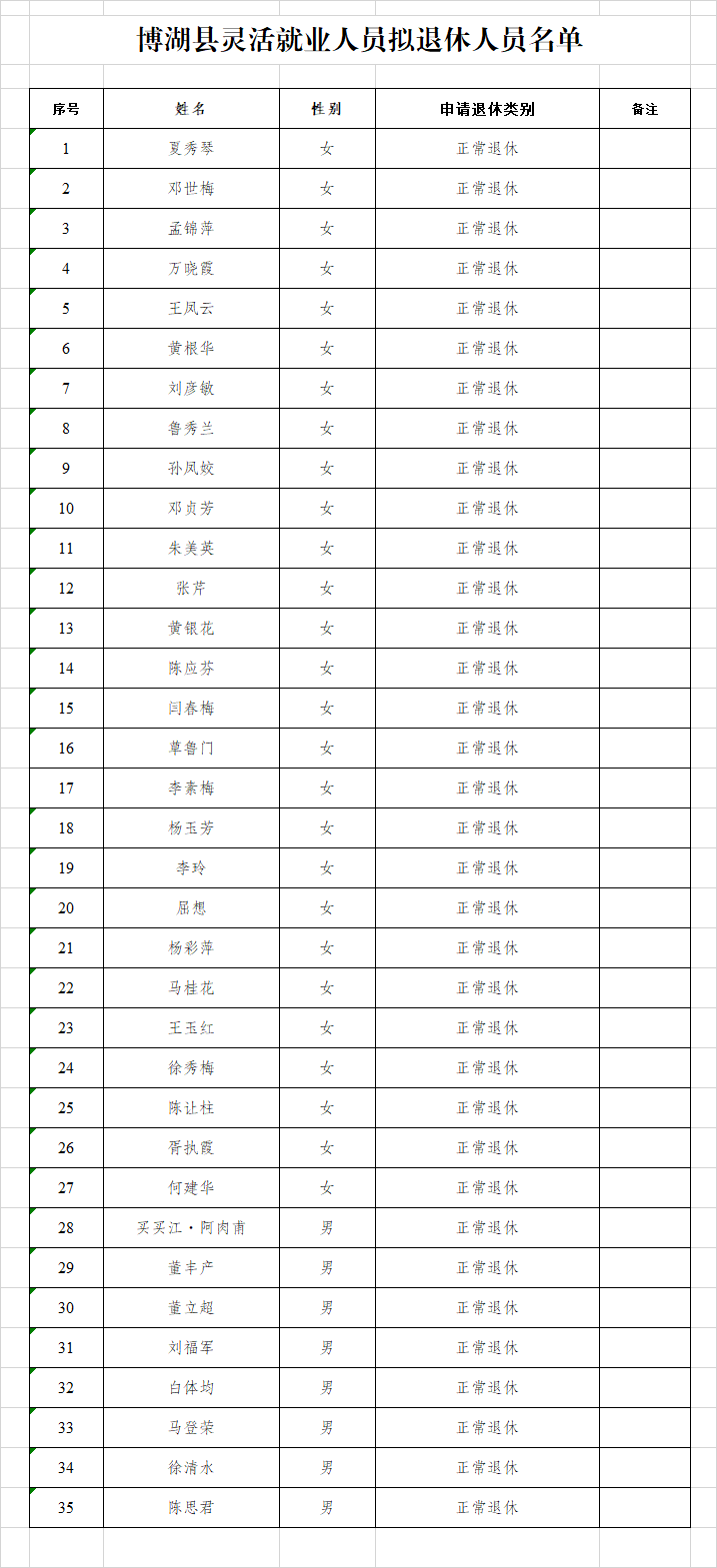 附件:博湖县灵活就业人员拟退休人员名单