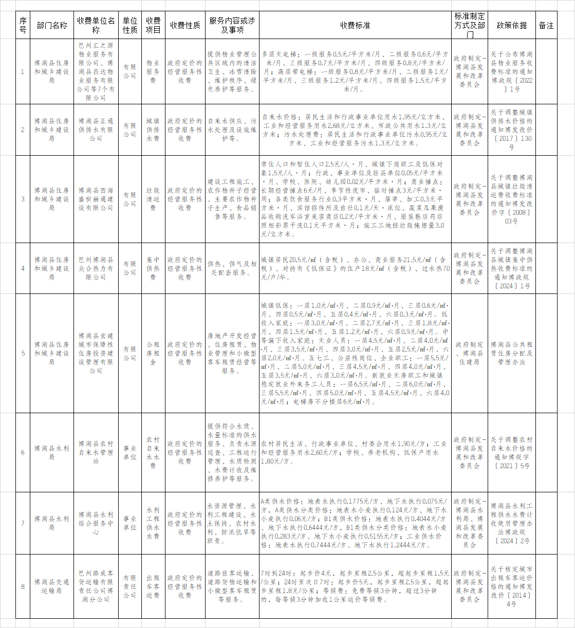 博湖县政府定价的经营服务性收费目录清单(2025版)