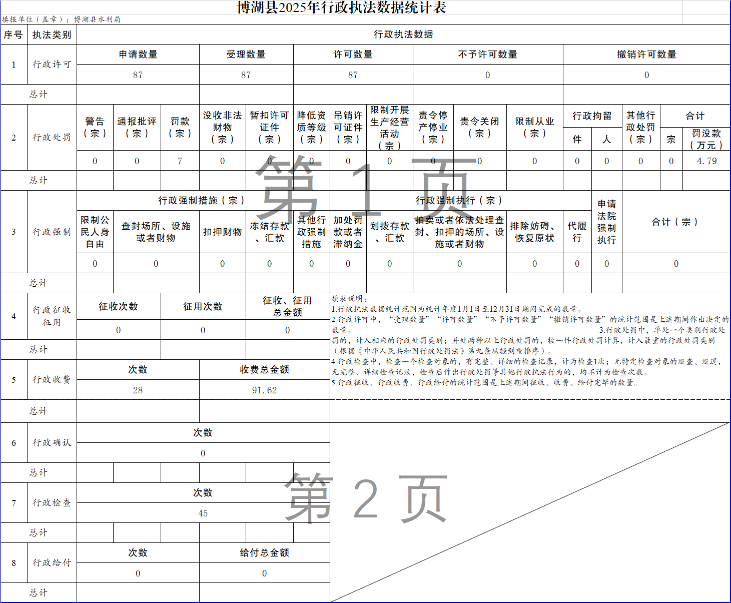 博湖县2025年行政执法数据统计表