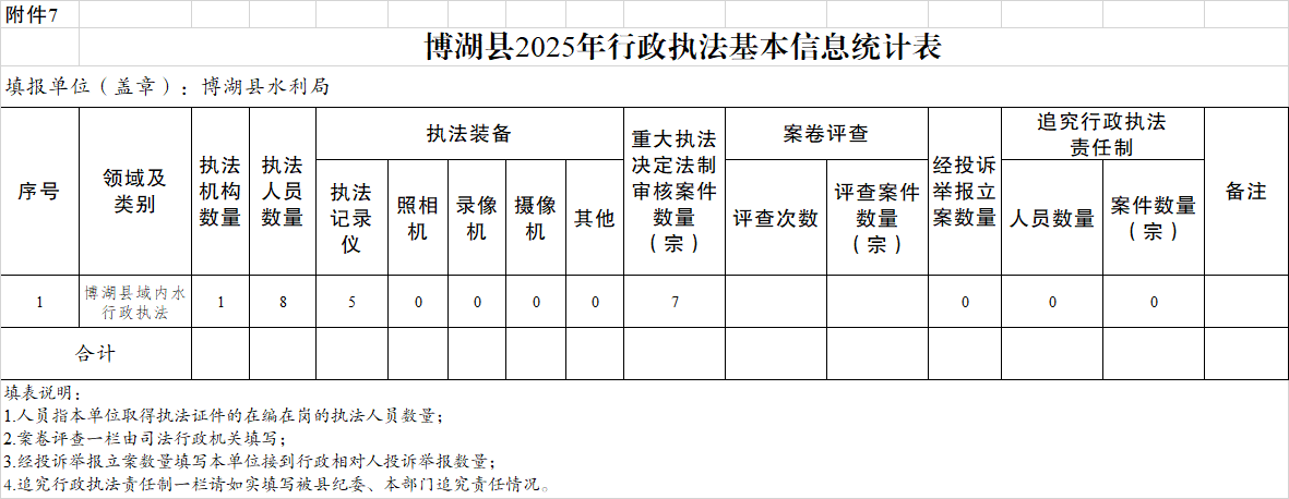 博湖县2025年行政执法基本信息统计表