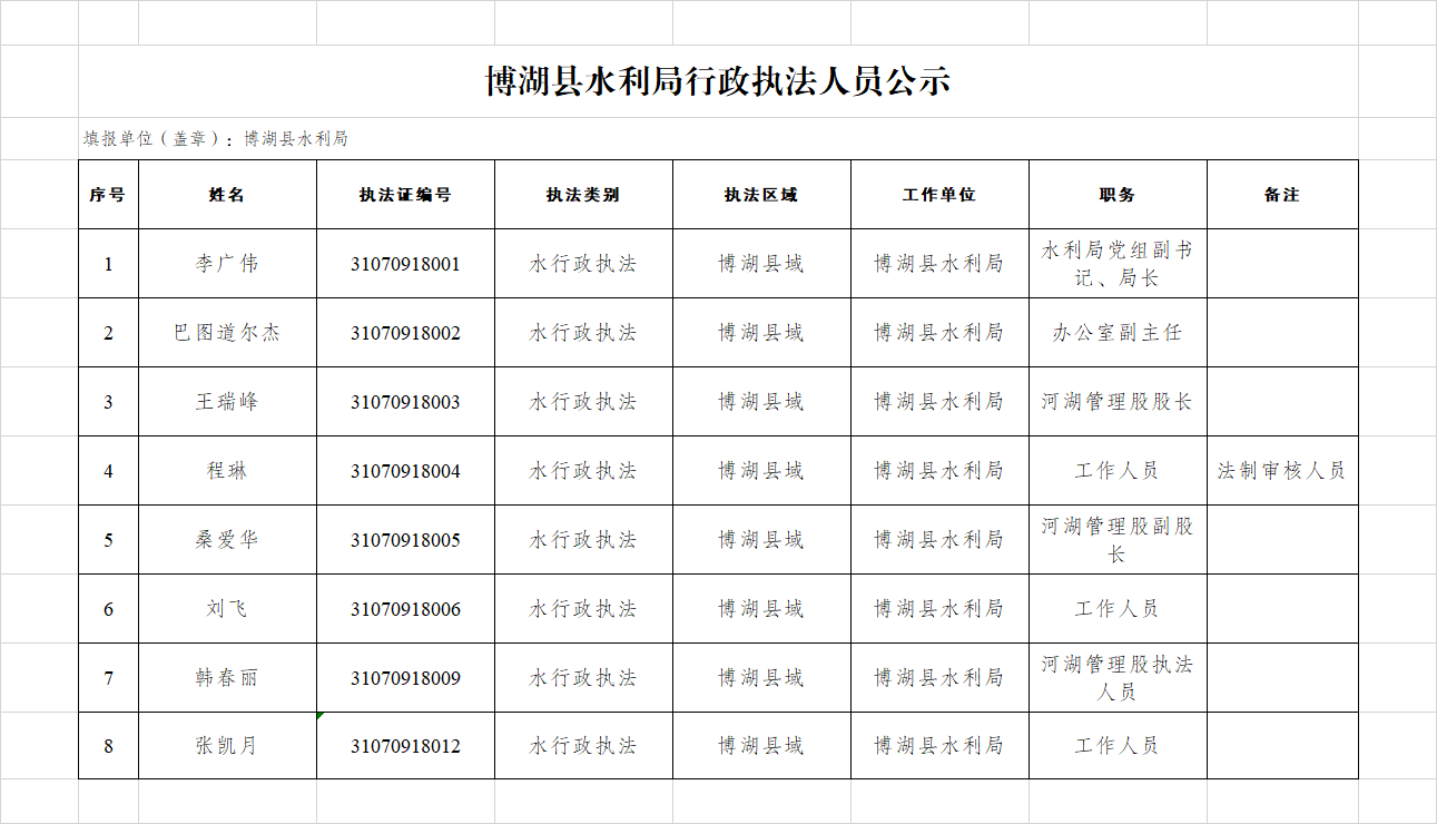 博湖县水利局行政执法人员公示
