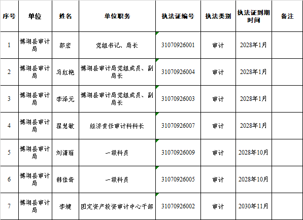 博湖县审计执法人员统计名册