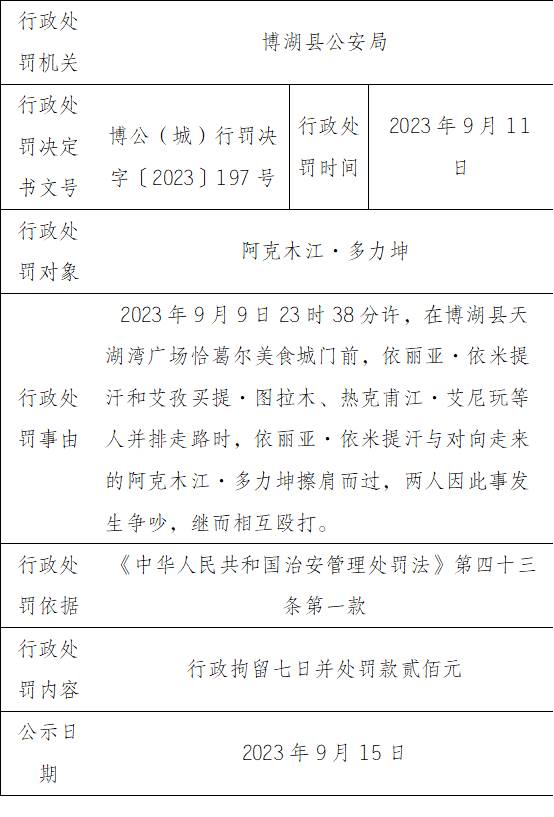 行政处罚信息公示表 博公(城)行罚决字[2023]197号