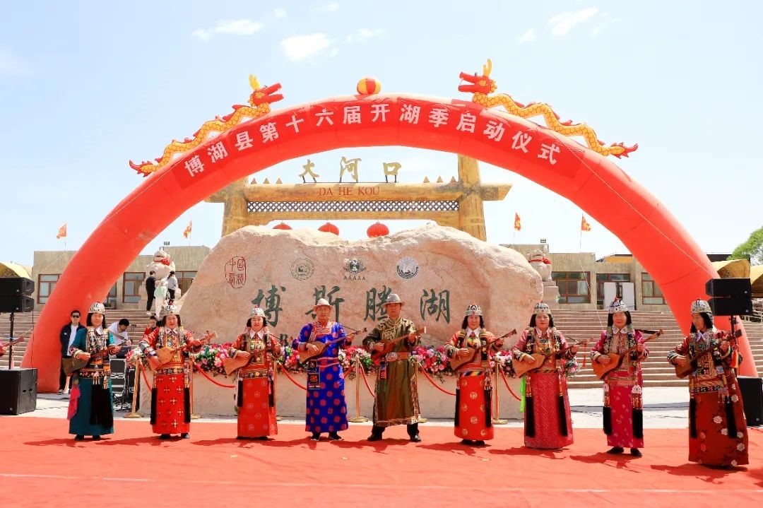5月27日,博湖县在博斯腾湖大河口景区举行“中国西海盛世渔歌”第十六届开湖季活动启动仪式。