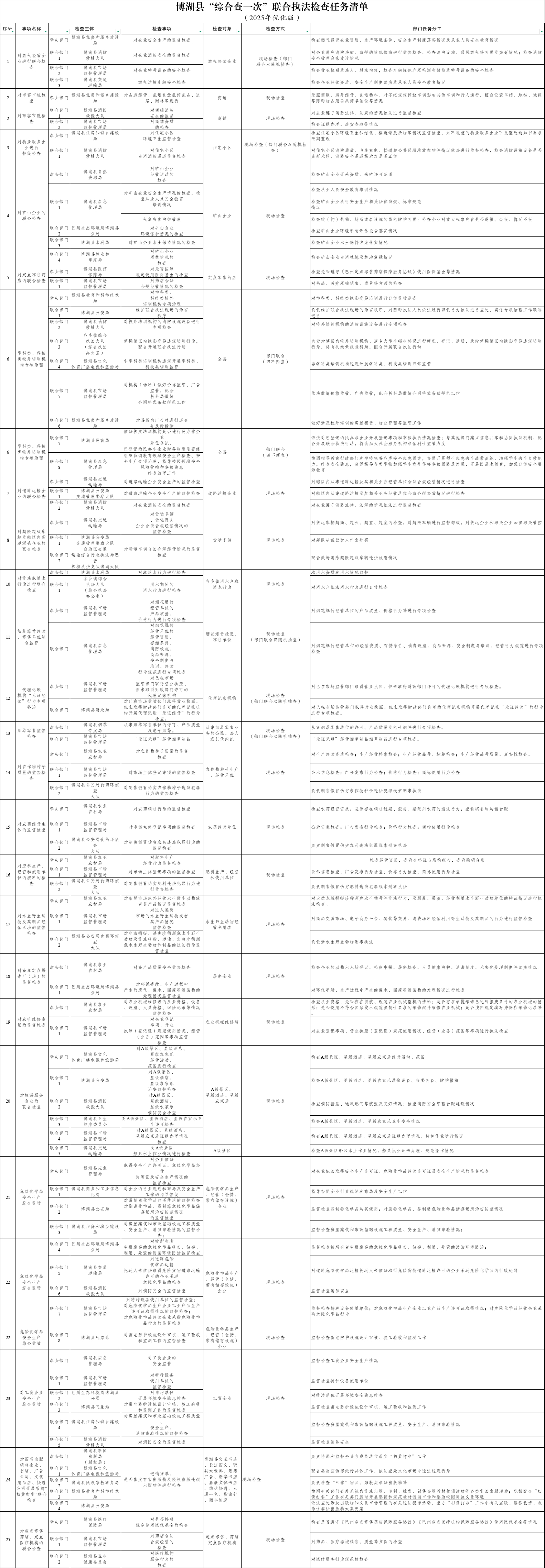 附件:博湖县“综合查一次”联合执法检查任务清单(2025年优化版)